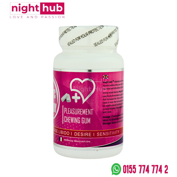 لبان ماجيك ليدي لبان فياجرا للنساء Magic Lady Pleasurement Chewing Gum ابتُكر خصيصًا للسيدات اللواتي يبحثن عن تجربة مختلفة من الحيوية والرغبة. يعمل هذا اللبان المميز على تحفيز الرغبة والإثارة بشكل طبيعي وآمن، بفضل تركيبته المدروسة التي تدعم الدورة الدموية وتحسّن المزاج وتزيد التفاعل الأنثوي أثناء العلاقة.